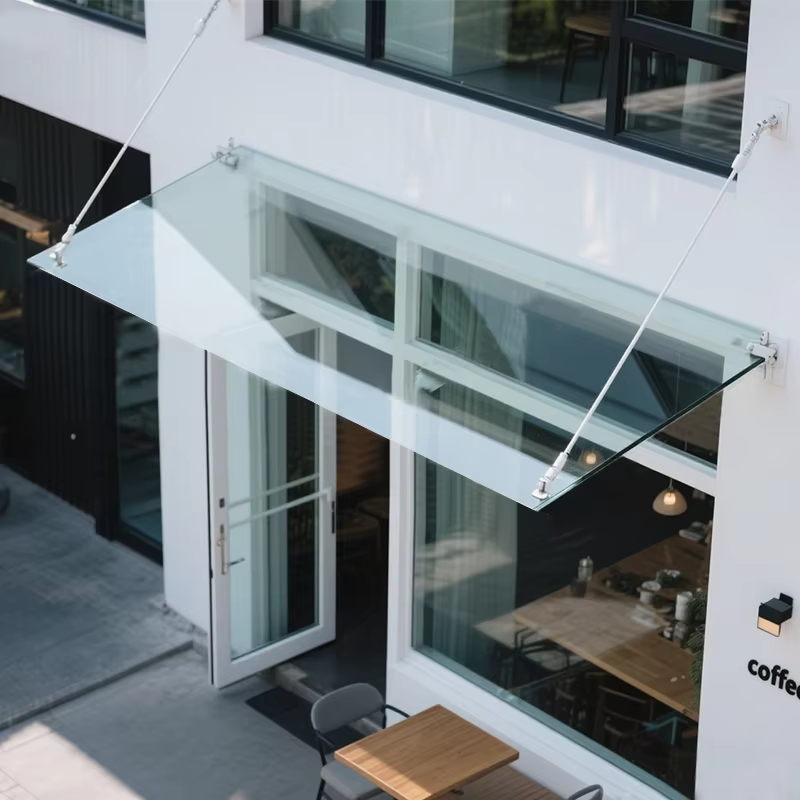 Stainless steel glass canopy, door glass awning |